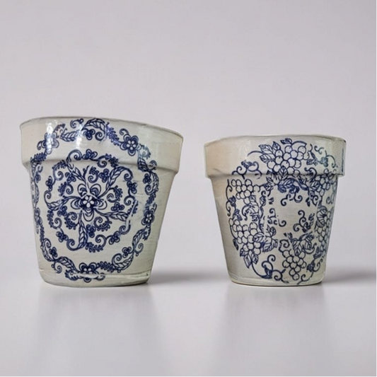 Heirloom Stamp Planter – Blue Echoes of Botanical Calm, Ø8×9 cm