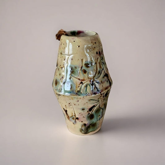 Spider Imprint Vase – Speckled Ceramic Vessel, Ø8× 10 cm