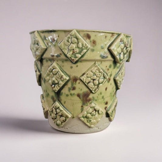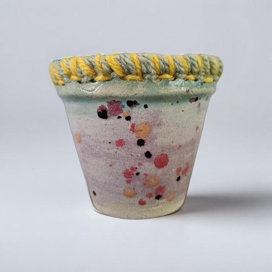 Crochet Rim Ceramic Planter – Playful Stitch-Touched Vessel, Ø6×7.5 cm