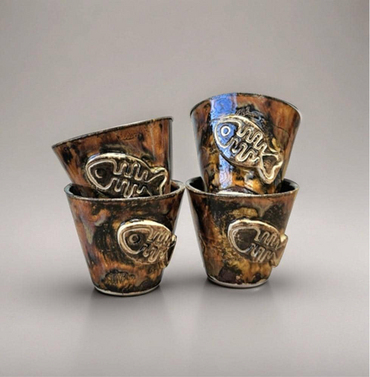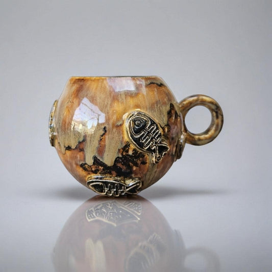 Earthfire Ceramic Teacup – Amber Glazed Fishbone Cup, Ø9.5×11 cm