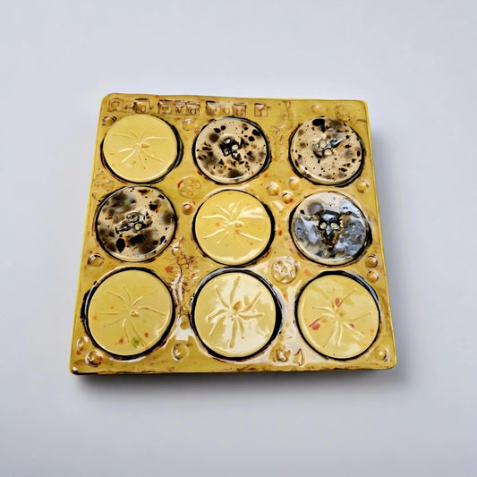 Twilight Circles Ceramic Tic Tac Toe Board – Handmade Ceramic Game Ritual, 18×18 cm