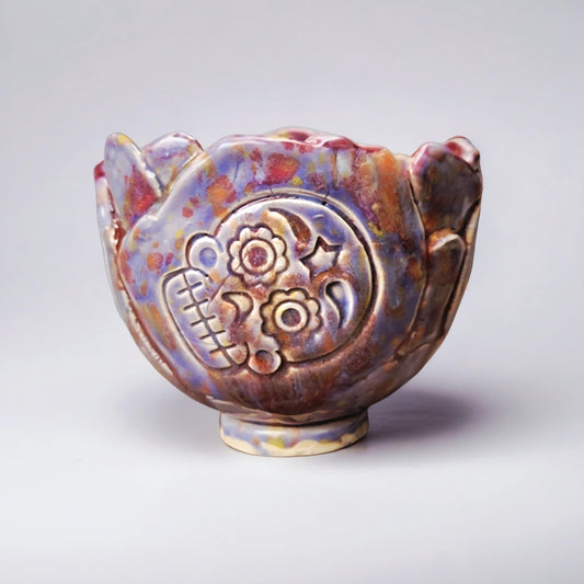 Skull Motif Ceramic Colander – Macabre Earthfire Kitchen Strainer, Ø13.5×7.5 cm