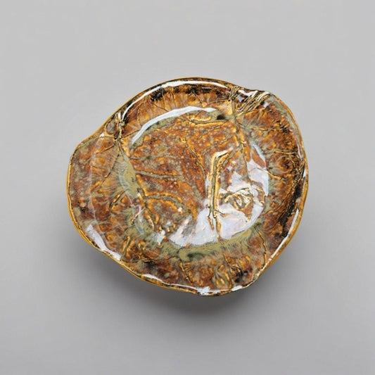 Rustic Leaf Ceramic Dish – Woodland Patterned Plate, Ø17 × 2 cm