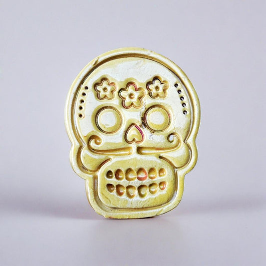 Golden Calavera Magnet – Sugar Skull Ornament, 4.5×5.5 cm, various designs