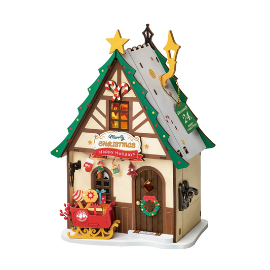 Twinkling Christmas House DIY Wooden Miniature Kit – Festive Holiday Cottage, 46 Pieces
