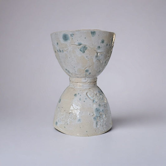 Moonface Gaze Ceramic Vase – Lunar Whispers for Dried Stems, Ø9 × 13 cm