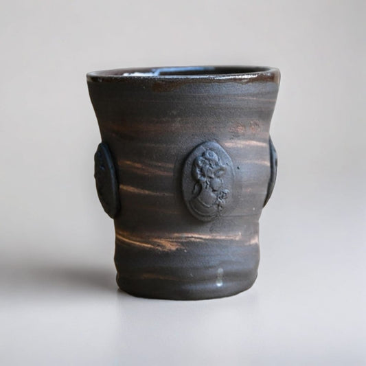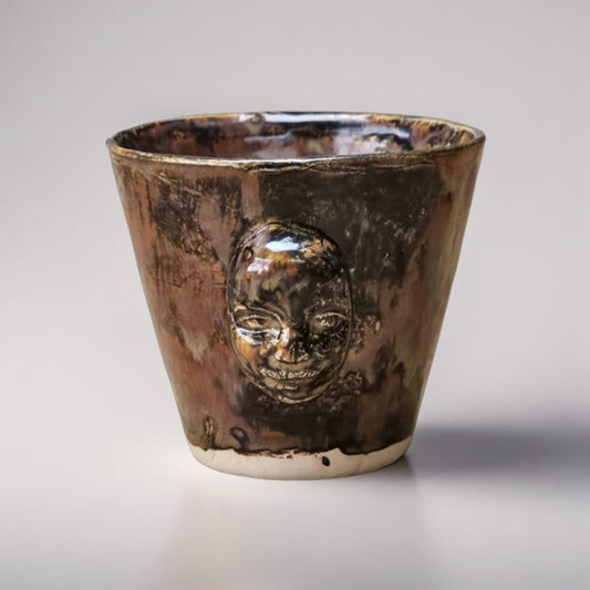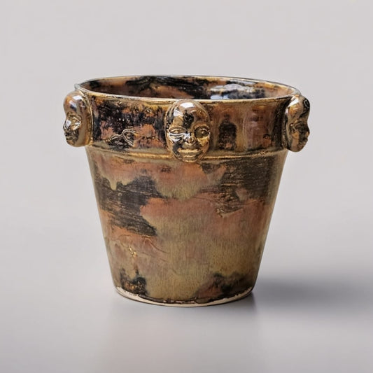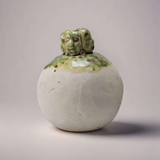Fourfold Gaze Ceramic Vase – Faces In Quiet Witness, Ø9×13 cm