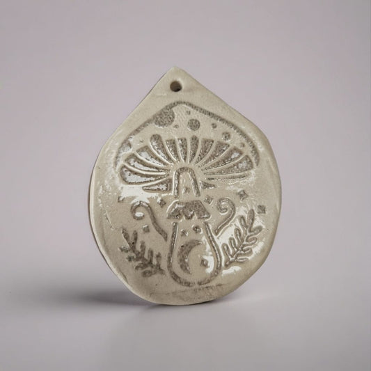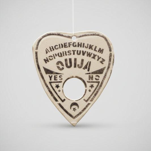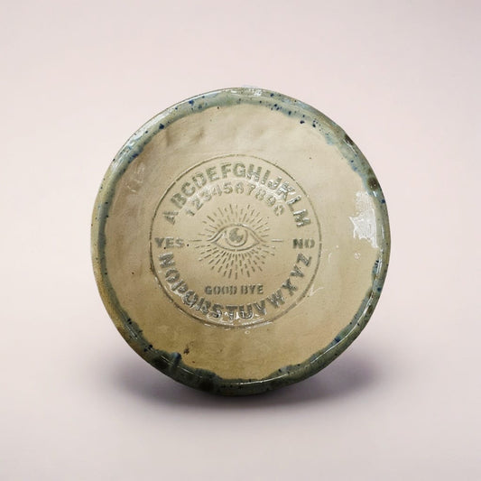 Spirit Board Ceramic Ouija Ornament – Whispered Signs & Still Questions, Ø8×9 cm