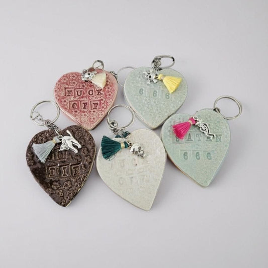 Not So Loving Heart Keychain – Unapologetic Ceramic Charm, 6×5 cm