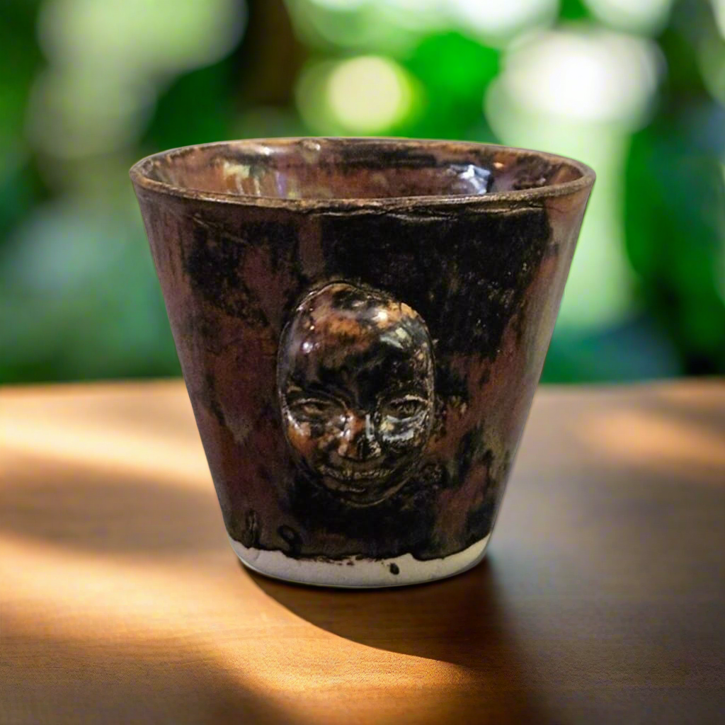 Cradled in your palm, this otherworldly doll-face vessel blinks into being—a surreal fusion of childlike innocence and cosmic mystery. Wheel-thrown and hand-shaped in stoneware, each miniature form carries a quiet presence: a strange, delicate being, glazed in soft hues and open to interpretation. It invites you to plant, pour, or simply contemplate - whatever ritual your spirit calls for.